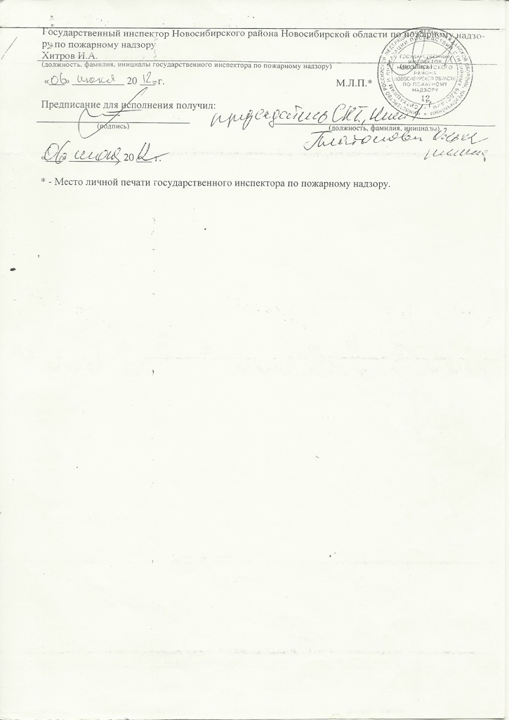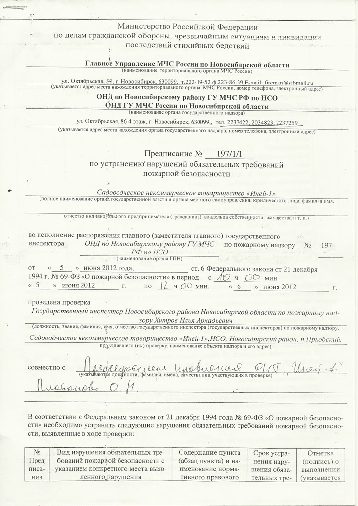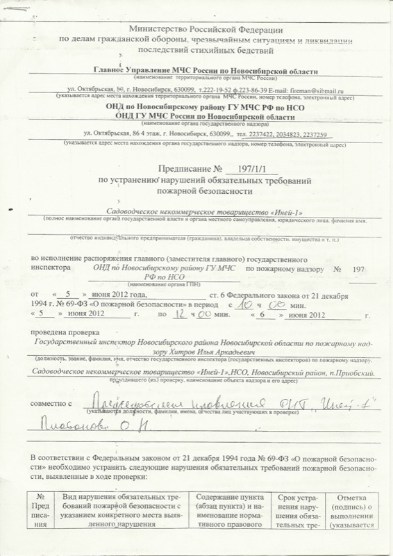 Предписание №197 от 6.06.2012