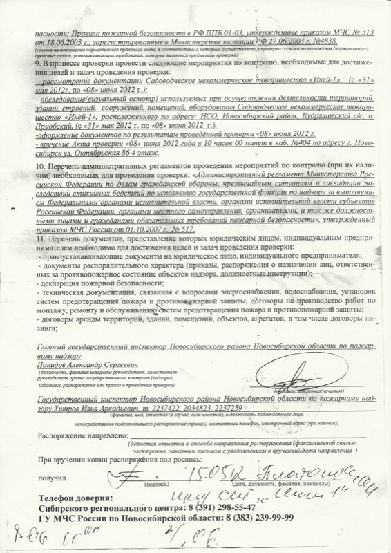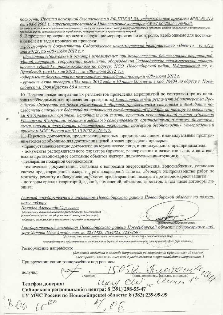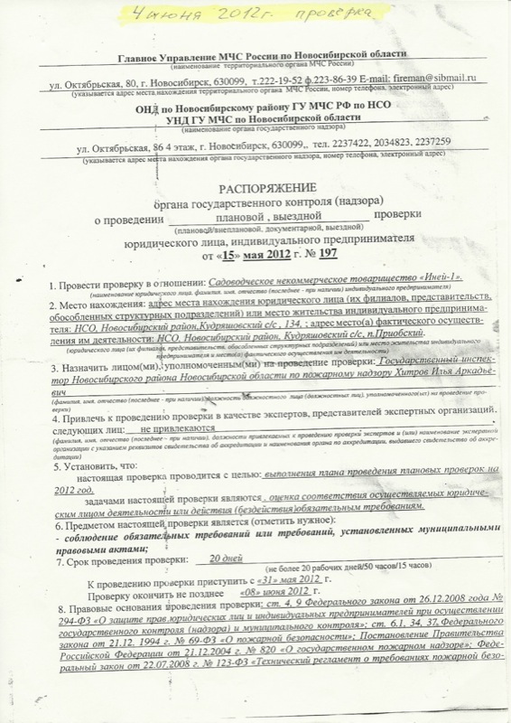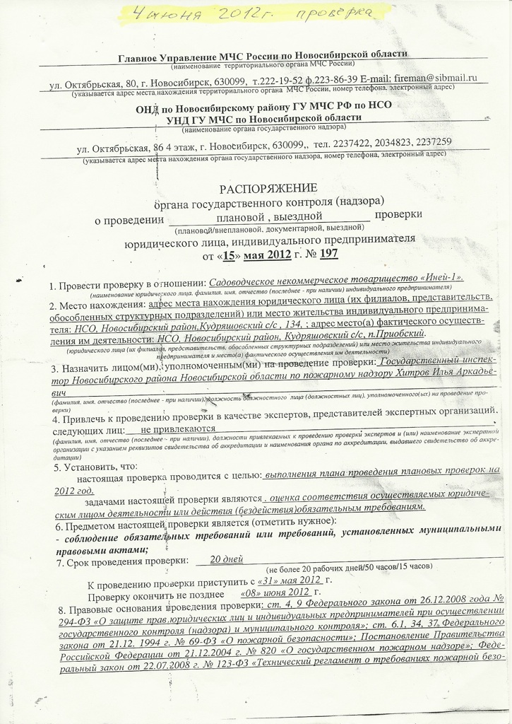 Распоряжение о проверке №197 от 15.05.2012
